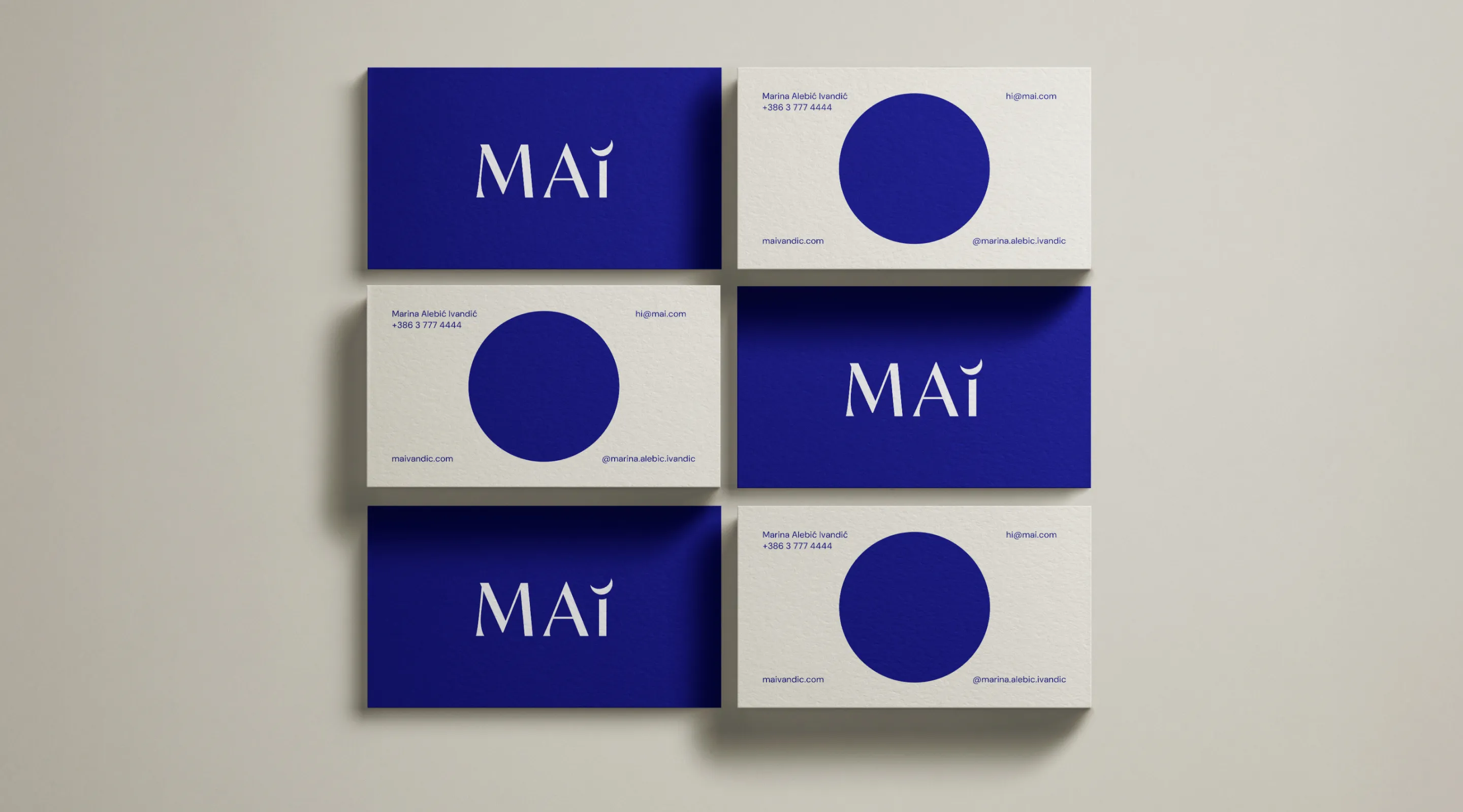Korištenjem elegantne i moderne serifne tipografije kreiran je logotip od Marininih inicijala. Na slovu “i” napravljena je intervencija i dodan je mjesec — simbol rasta i životnih promjena. Mjesec i njegove mijene koriste se i kao vizualni elementi koji nadopunjuju brend u raznim komunikacijskim materijalima.