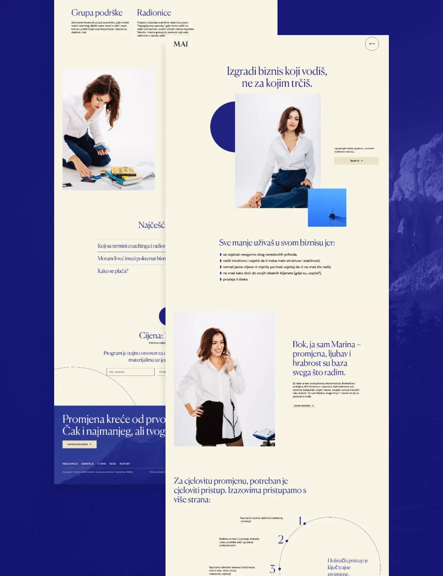 Marinin stari vizualni identitet više nije pratio njezinu priču ni energiju. Željela je svojim klijenticama pružiti iskustvo višeg standarda — pročišćen prostor u kojem će se osjećati posebno i inspirirano rasti — kako u životu, tako i u biznisu.