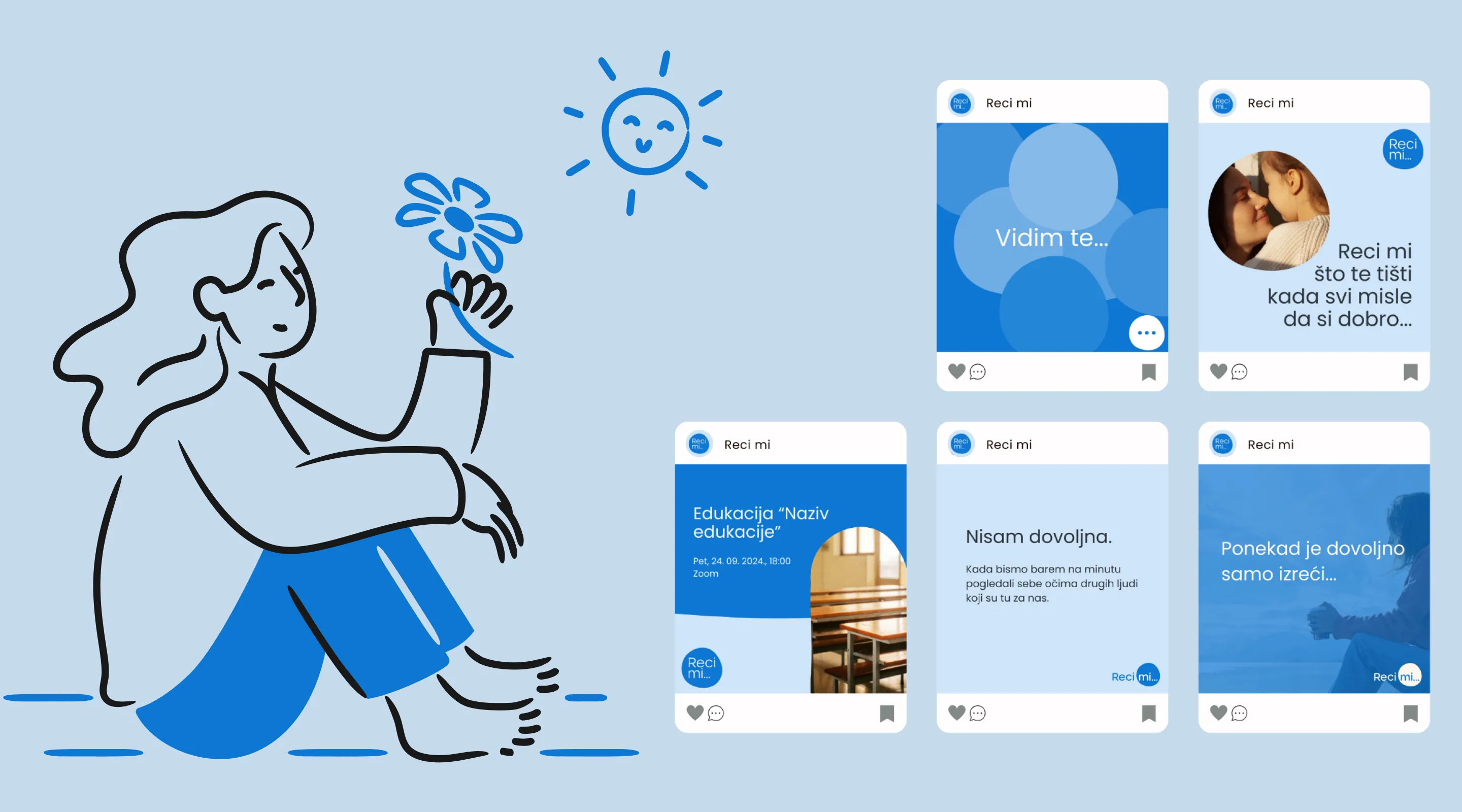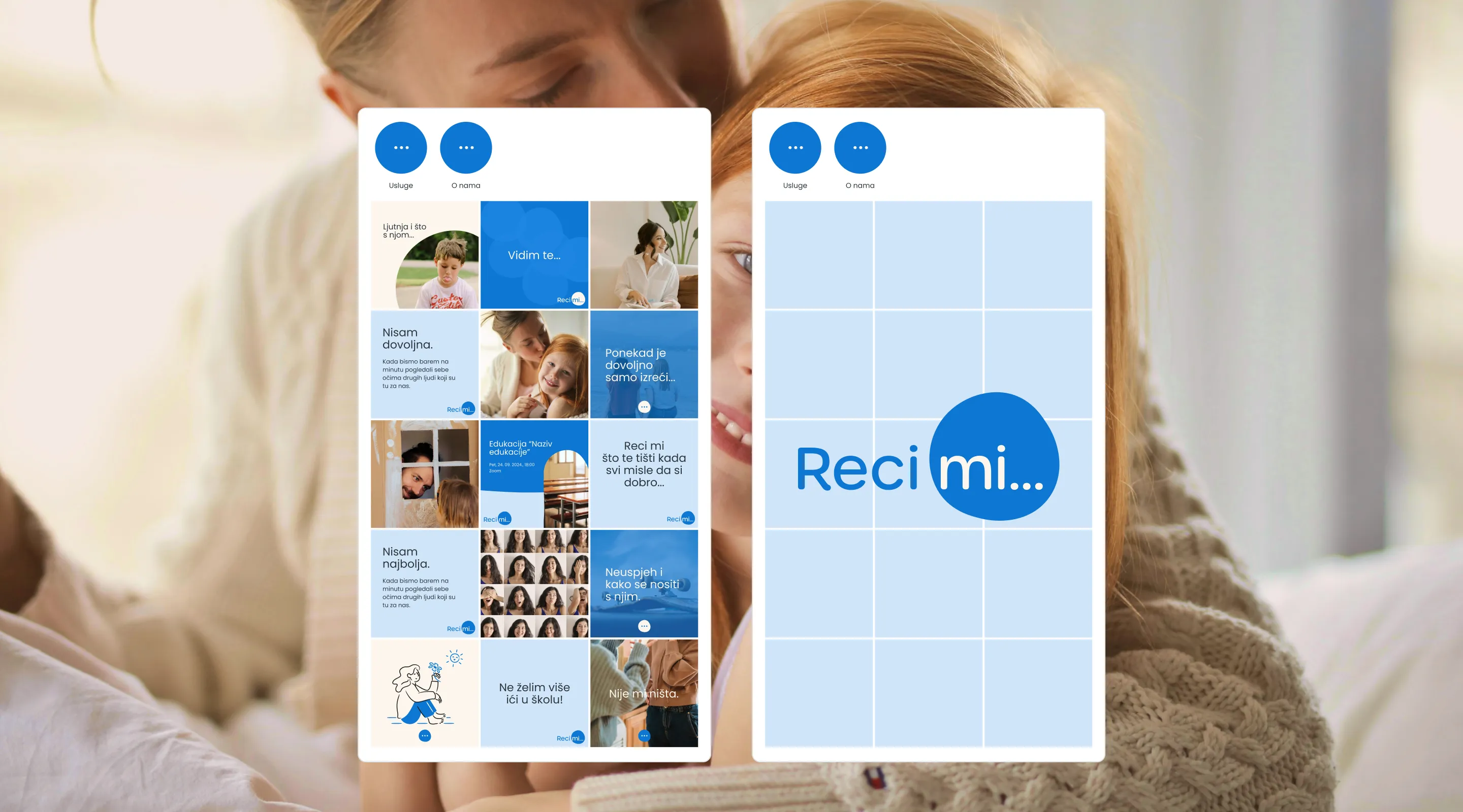 Iz te ideje nastalo je ime “Reci mi”, poziv na dijalog koji stvara osoban i povjerljiv ton. Kako bismo jasno istaknuli segment poslovanja., imenu je dodan potpis: “Podrška za djecu, adolescente i roditelje.”
